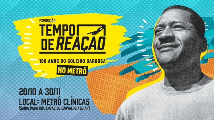 A exposição ''Tempo de Reação - 100 anos do goleiro Barbosa'' ganhará novo espaço na cidade de São Paulo. Entre os dias 20 de outubro e 30 de novembro, quem passar pela estação Clínicas do metrô paulistano poderá conhecer mais sobre a carreira do ex-goleiro Moacyr Barbosa, ídolo do Vasco e da Seleção Brasileira.