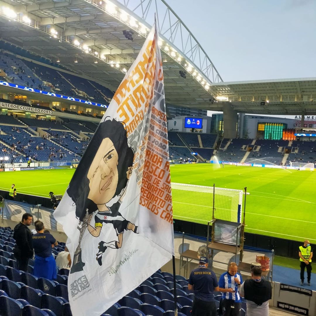 Bandeira em homenagem a Dinamite aparece no estádio do Porto em jogo da Champions