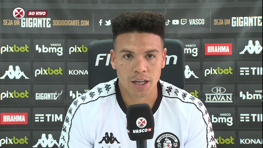 Coletiva de Marquinhos Gabriel marca estreia da Pixbet no backdrop do Vasco; veja imagem