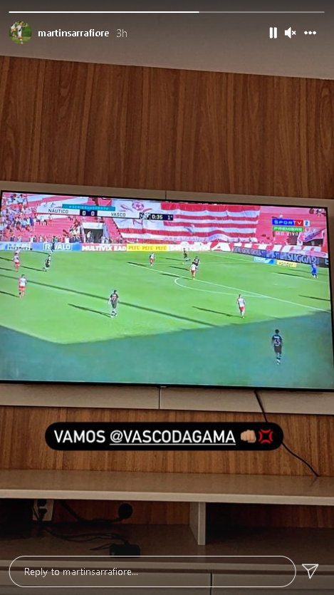 Ainda se recuperando de cirurgia, Sarrafiore postou foto assistindo ao jogo do Vasco pela TV