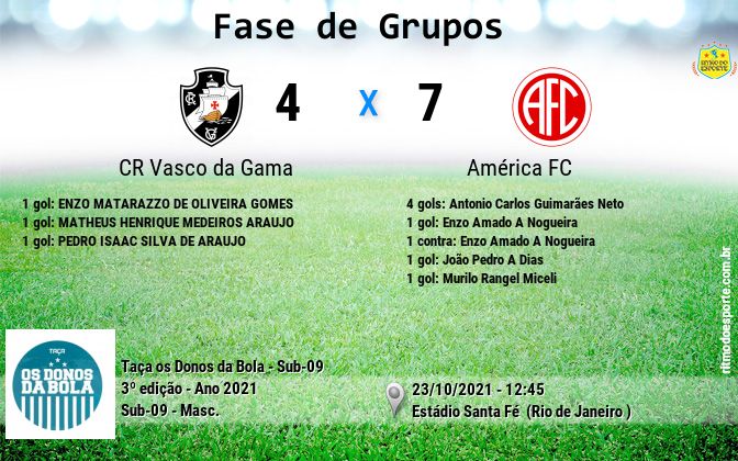 Pré-Mirim: Vasco perde para o America pela Taça Os Donos da Bola Sub-09