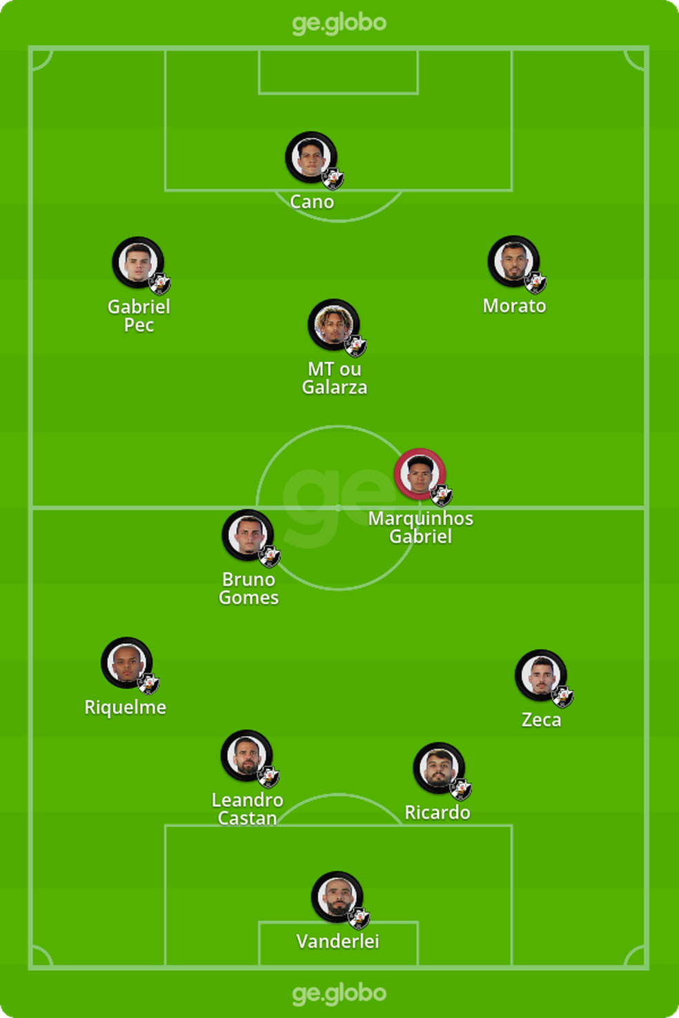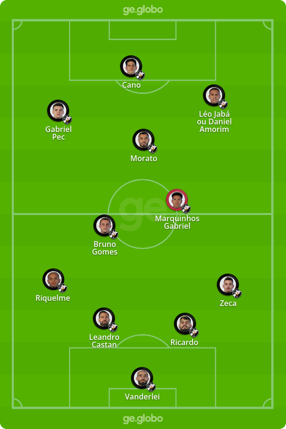 Por se tratar de um jogo em São Januário, Diniz poderia manter a estrutura do meio de campo com Bruno Gomes e Marquinhos Gabriel e recuar um dos atacantes para a função de meia. Neste caso, abriria espaço para Léo Jabá ou Daniel Amorim, o que deixaria, ao menos no papel, o time mais ofensivo. O problema é que Morato e Gabriel Pec já foram testados como meias nesta temporada por Marcelo Cabo, mas nenhum dos dois correspondeu na função.