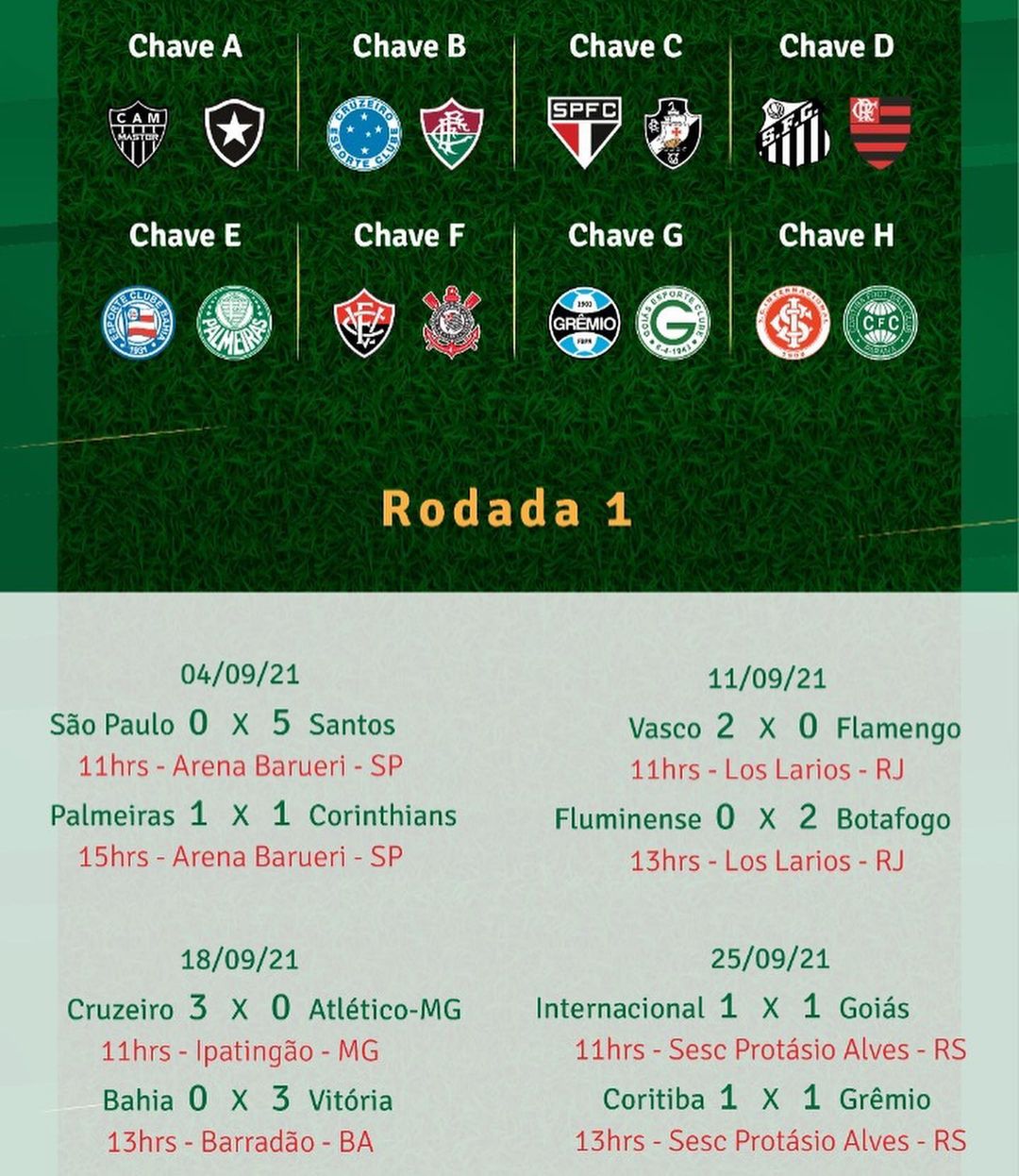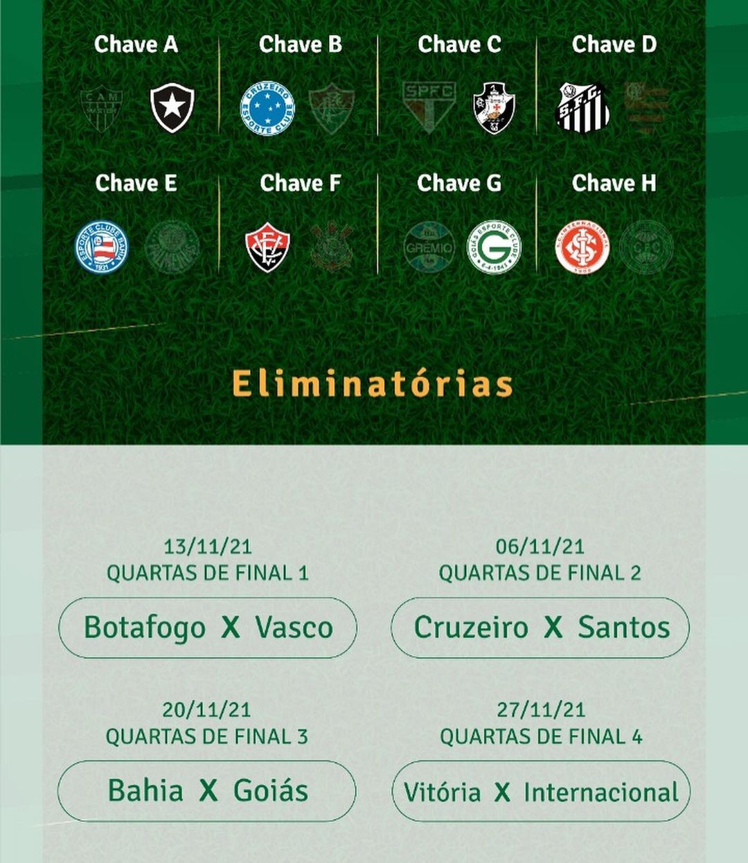 Equipes classificadas para as quartas de finais: Botafogo, Vasco, Santos, Cruzeiro, Bahia, Goiás, Vitória e Internacional.