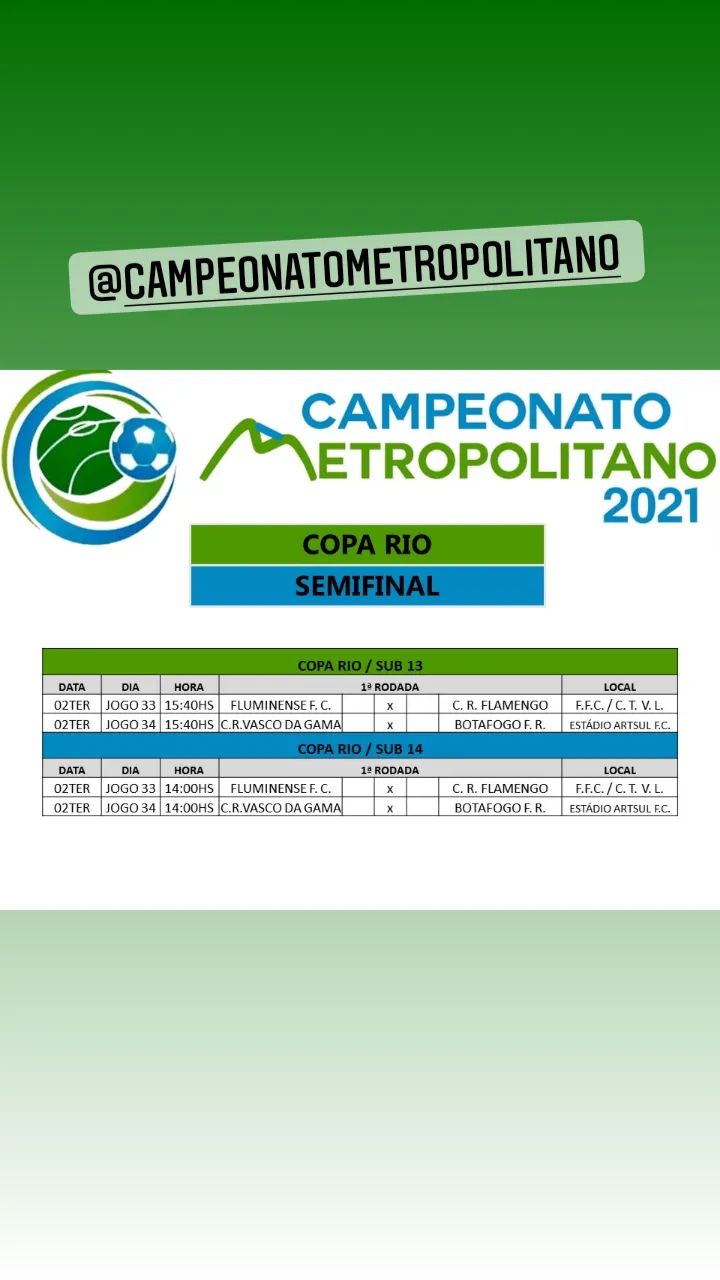 Vasco faz semifinais da Copa Rio no Sub-13 e no Sub-14 contra o Botafogo nesta 3ª-feira
