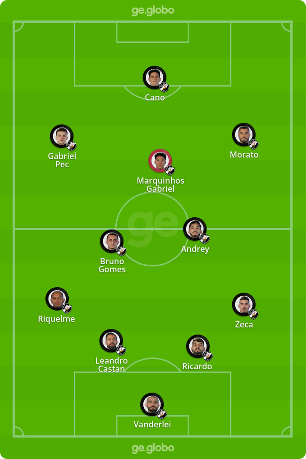 Provável escalação: Lucão, Zeca, Castan, Ricardo Graça, Riquelme; Bruno Gomes, Andrey, Marquinhos Gabriel, Morato, Gabriel Pec e Cano.