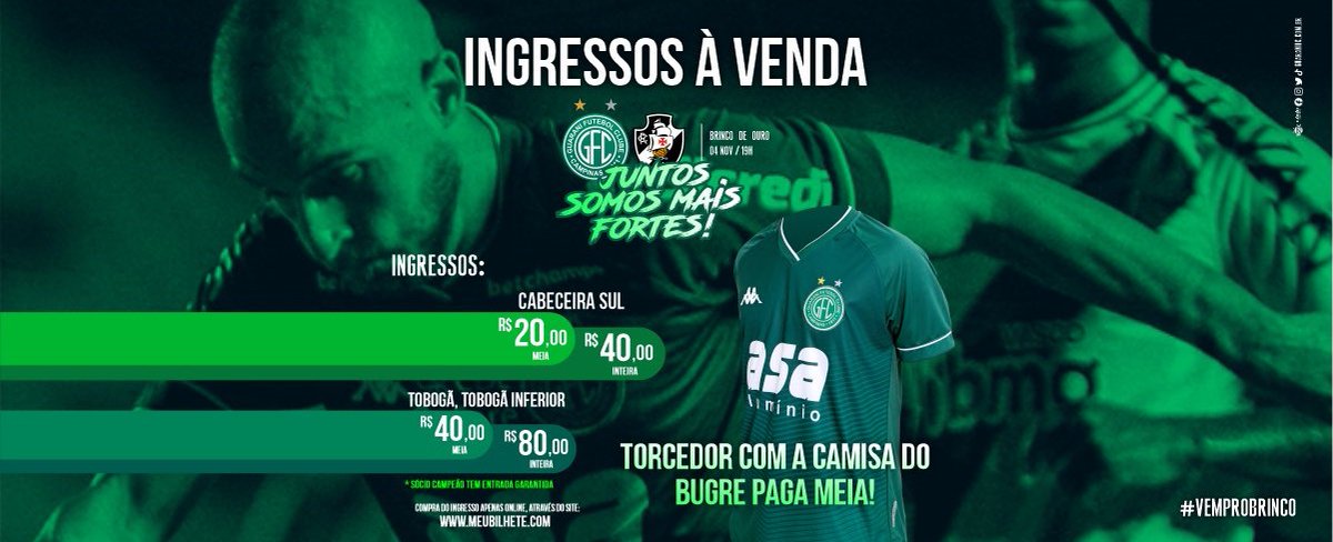 #Guarani | Conselho de Administração abre, nesta sexta-feira, a venda de ingressos para partida contra o Vasco da Gama, na próxima quinta-feira, 04 de novembro, no Estádio Brinco de Ouro da Princesa, a partir das 19h, pela 33ª rodada da Série B do Campeonato Brasileiro.