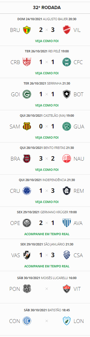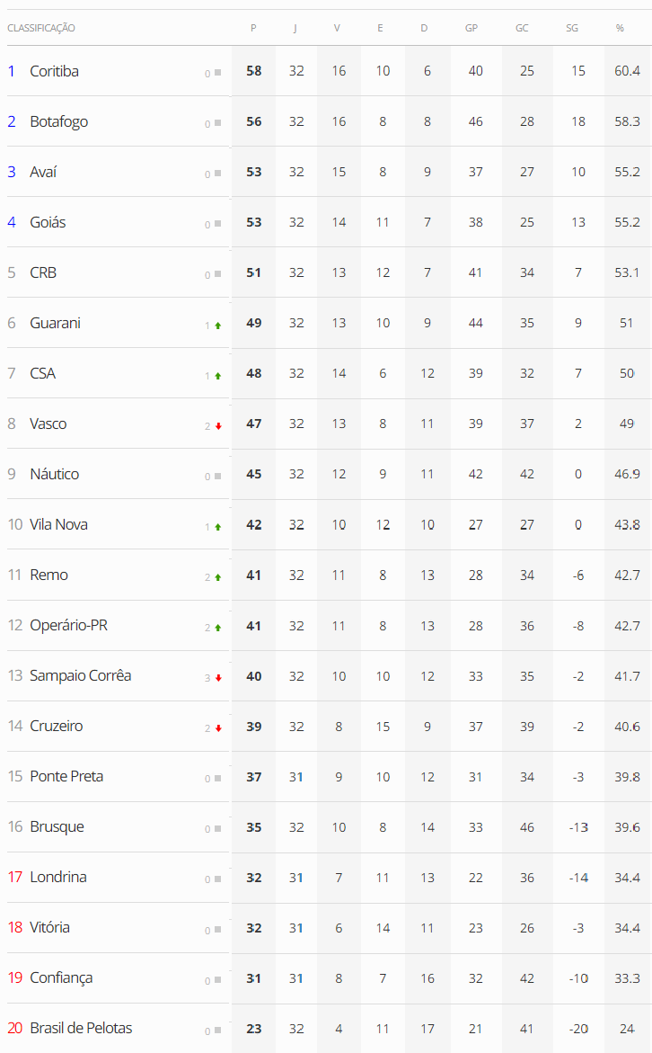 Com a derrota para o CSA por 3 a 1 e os demais resultados da rodada, o Vasco terminará a 32ª rodada do Brasileiro da Série B em 8º lugar e a 6 pontos o G4.