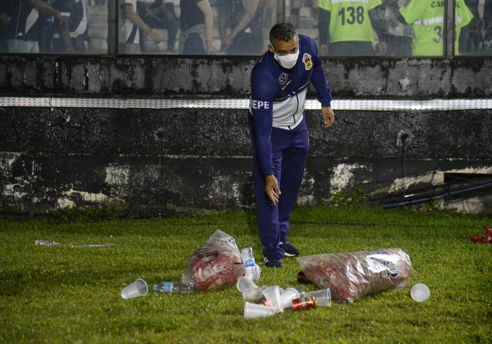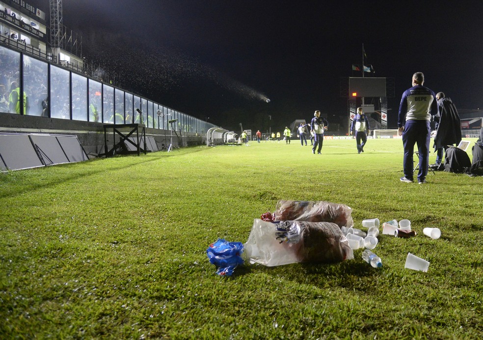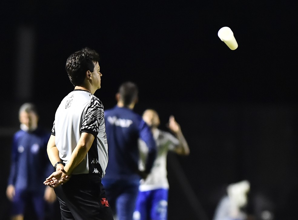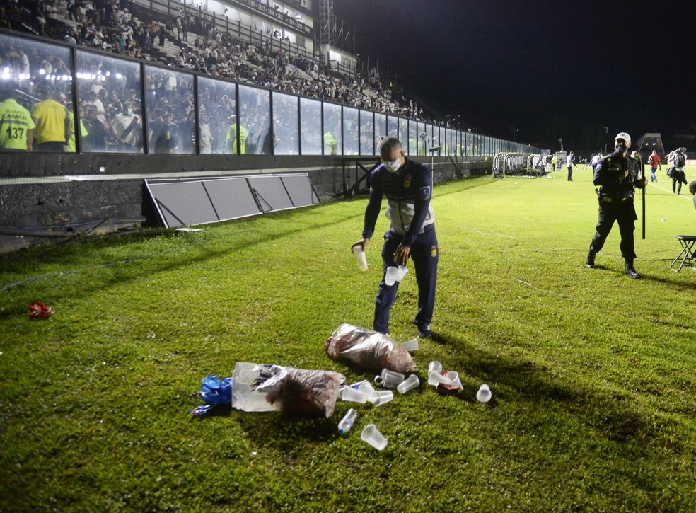 Após derrota para o CSA, torcida do Vasco se revolta e arremessa copos no campo; veja fotos