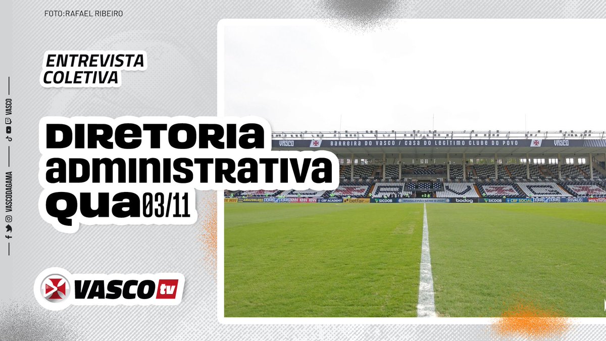 A Diretoria Administrativa do Vasco promoverá uma entrevista coletiva, nesta quarta-feira (3), às 16h, em São Januário.