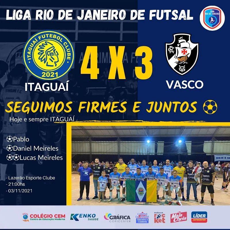 Em jogo disuputado na noite desta 4ª-feira em Itaguaí, o time de Futsal adulto do Vasco foi derrotado por 4 a 3 pelo Itaguaí em sua estreia na Liga Rio de Janeiro.