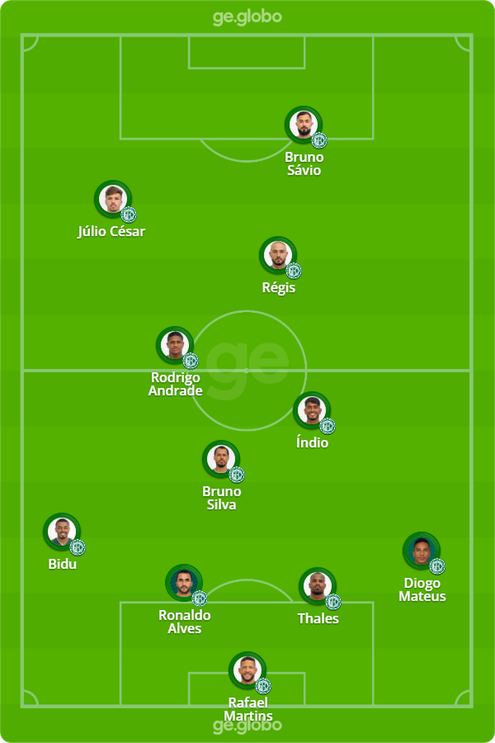 Provável escalação: Rafael Martins, Diogo Mateus, Ronaldo Alves, Thales e Bidu; Bruno Silva, Índio, Rodrigo Andrade e Régis; Júlio César e Bruno Sávio.
