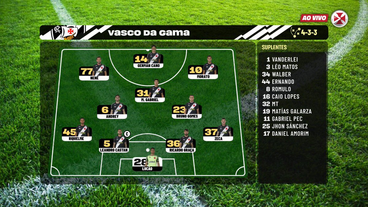 VascoTV apresenta disposição tática do time titular desta 5ª-feira; confira