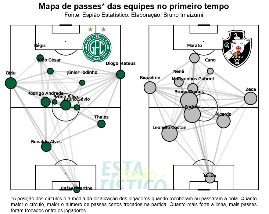 Confira os mapas de passes de Guarani e Vasco no 1º tempo