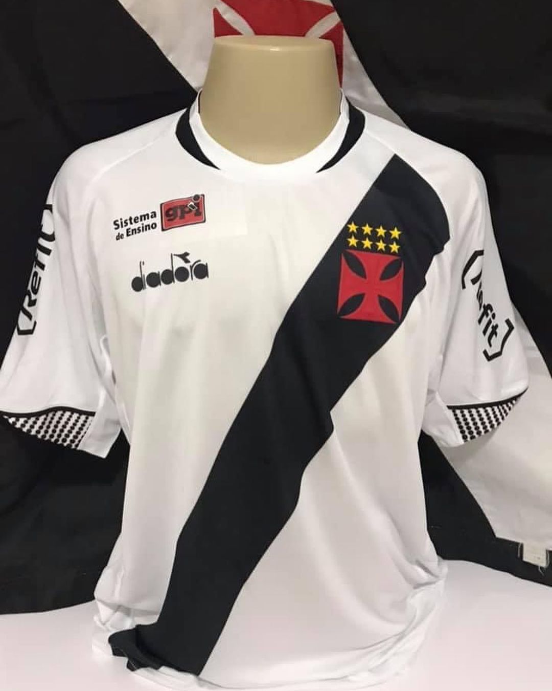 Diadora, essa camisa foi utilizada na vitória por 2x1 pelo campeonato brasileiro 2018 é esse modelo que habitualmente era usado na linha foi utilizado pelo Martin Silva pela primeira vez nessa partida, depois esse modelo viria a ser usado contra o internacional também em São Januário.