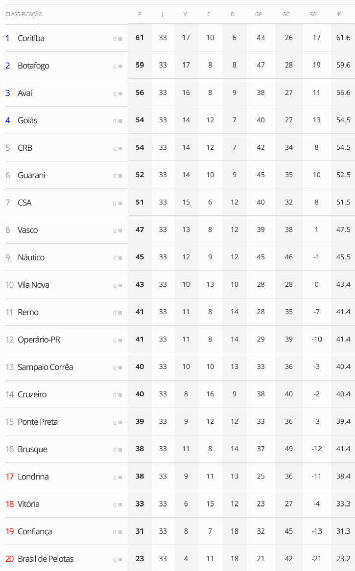 Por mais que a situação do Vasco seja muito difícil, ainda há chances matemáticas de acesso. A 34ª rodada do Brasileiro da Série B se inicia nesta 6ª-feira com três jogos, dois deles envolvendo times que estão à frente do Gigante na Colina na tabela e precisam tropeçar: CSA (que recebe o Remo às 17h) e Avaí (que recebe o Vitória às 19h).