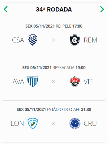 Rodada 34 do Brasileiro da Série B começa nesta 6ª-feira com CSA e Avaí em campo
