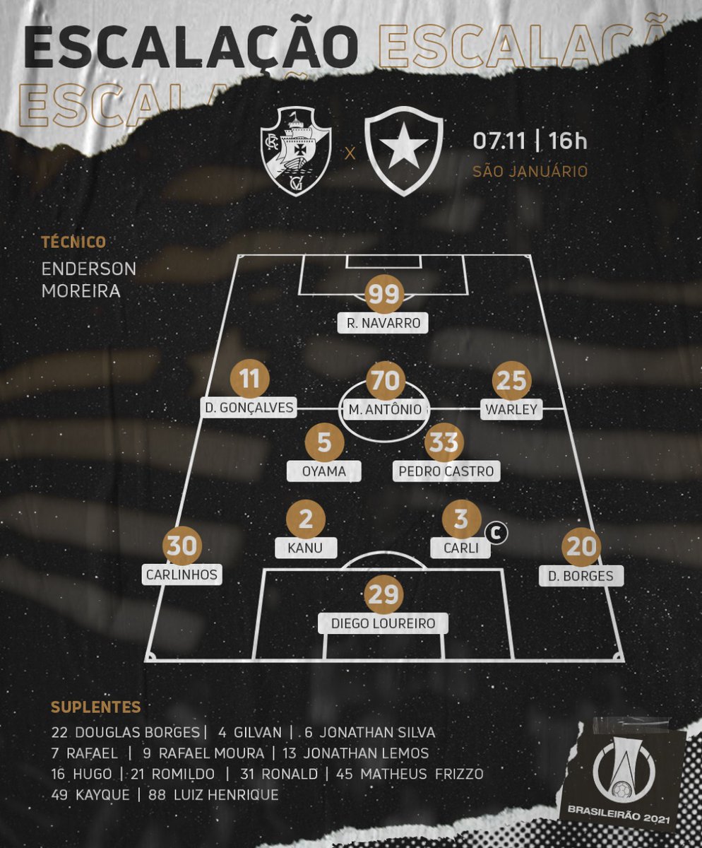07/11/21 - Confira os relacionados do Vasco para o jogo contra o Botafogo