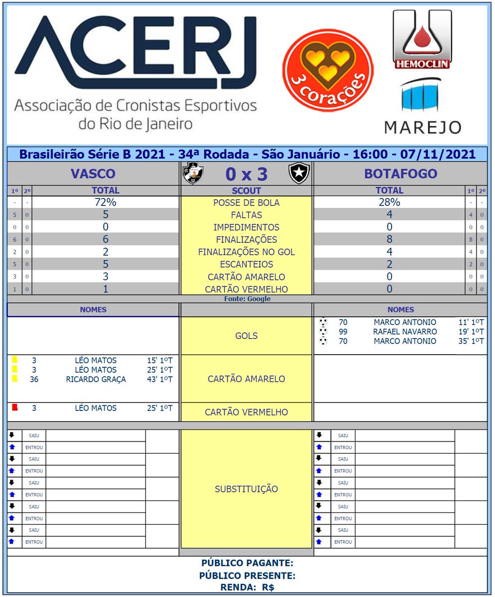 Scout do 1º Tempo de Vasco e Botafogo pela 34ª Rodada do Campeonato Brasileiro da Série B 2021 em São Januário (Fonte: Google) #BrasileiraoSerieB #acerjinforma #VASxBOT #Vasco #Botafogo