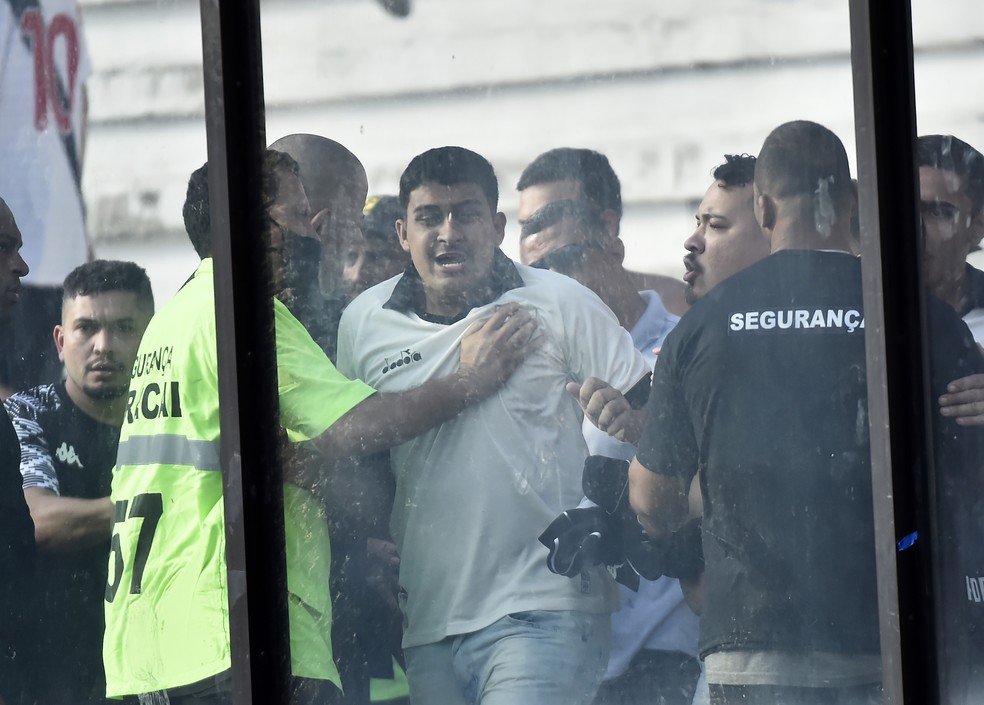 Torcedores do Vasco se irritam após expulsão de Léo Matos, jogam copos no gramado e são contidos por seguranças