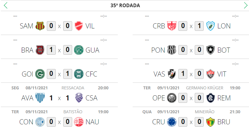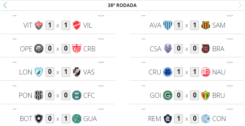 - O Goiás (5º colocado, 55 pontos) conquista no máximo 3 pontos em seus 4 jogos restantes (Coritiba, Remo, Guarani e Brusque), chegando a no máximo 58 pontos