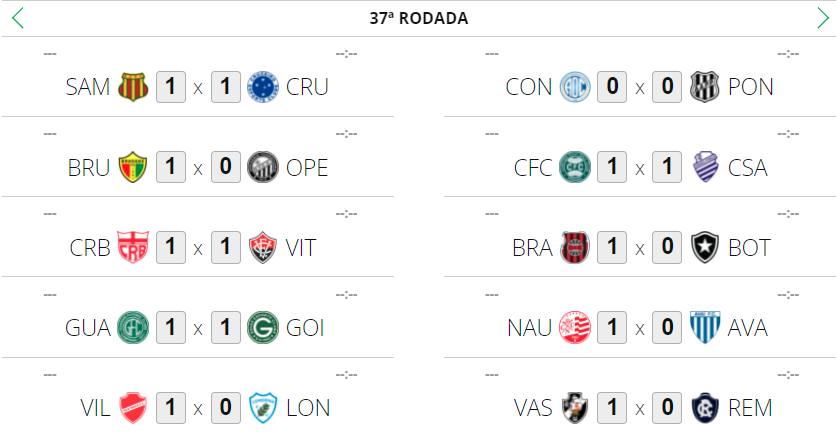 - O CRB (6º colocado, 54 pontos) conquista no máximo 4 pontos em seus 4 jogos restantes (Londrina, Brusque, Vitória e Operário), chegando a no máximo 58 pontos