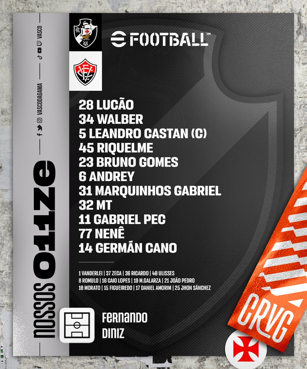 Confira a escalação do Vasco; Walber, Andrey e Gabriel Pec são as novidades no time titular