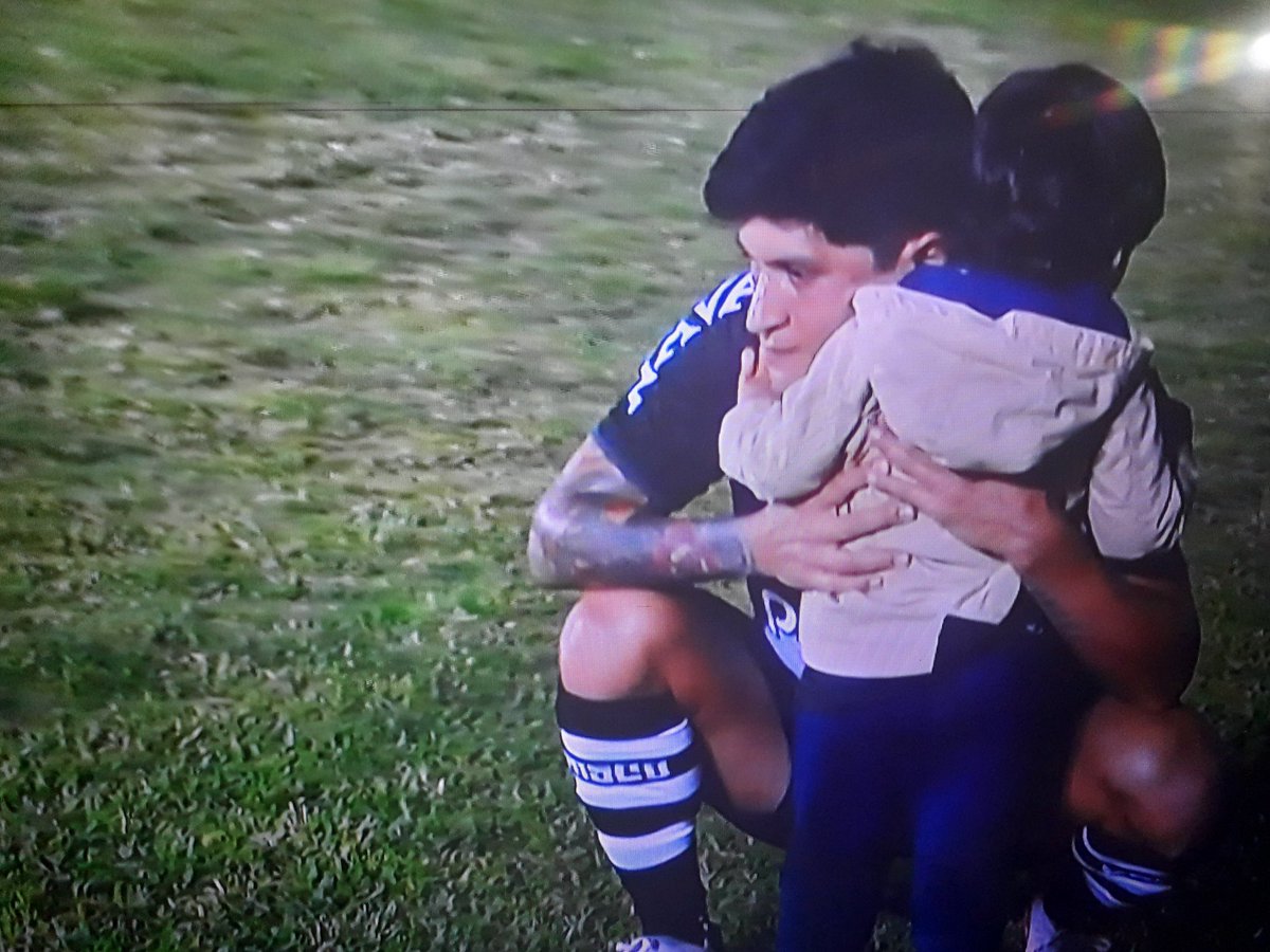 Cano com seu filho em São Januário, aparentemente em tom de despedida.