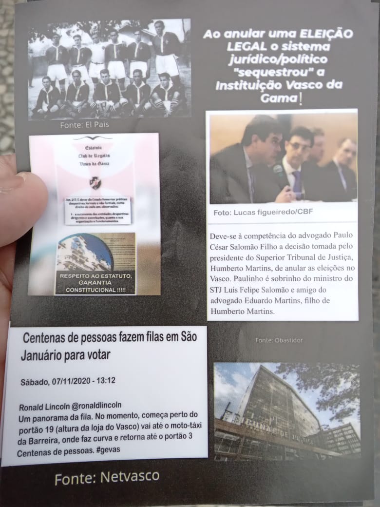 Panfletos sobre política do Vasco são distribuídos no Centro do Rio de Janeiro