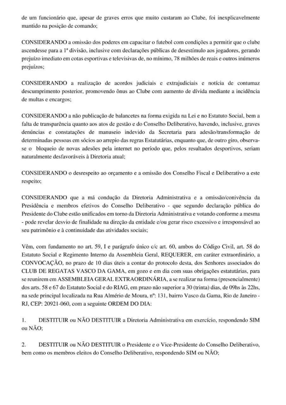 Além de buscar assinaturas em ambiente virtual, os grupos que pedem a destituição de Salgado farão campanhas em São Januário aos sábados para colher mais adesões ao movimento. Líder do Identidade Vasco, Roberto Monteiro, presidente do Conselho Deliberativo durante o mandato de Alexandre Campello, explicou como surgiu o manifesto.