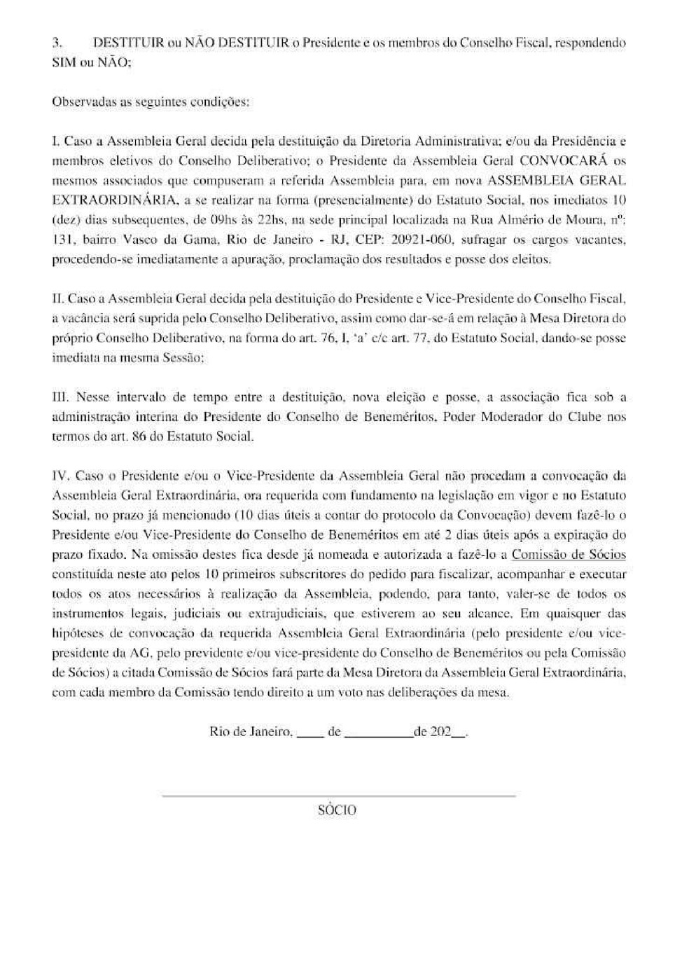 O manifesto objetiva de 2.500 a 3.000 assinaturas porque para se convocar uma Assembleia Geral para votar a destituição ou não de um presidente é necessária a adesão de pelo menos 20% de associados com direito a promovê-la. Atualmente, na seção "Transparência" do site Sócio Gigante, o clube informa que dispõe de 12.933 sócios estatuários. Na última eleição, pouco mais de oito mil estavam aptos a voto.