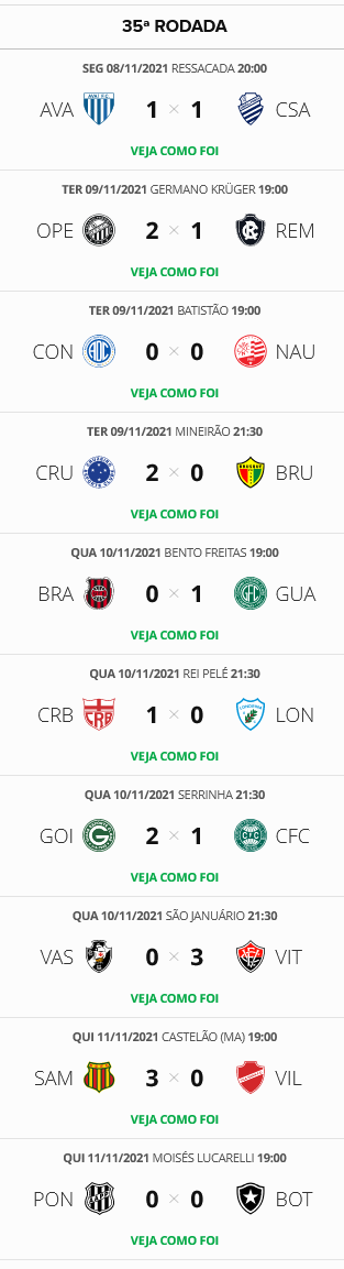 Fonte: NETVASCO (texto), ge (classificação, resultados)