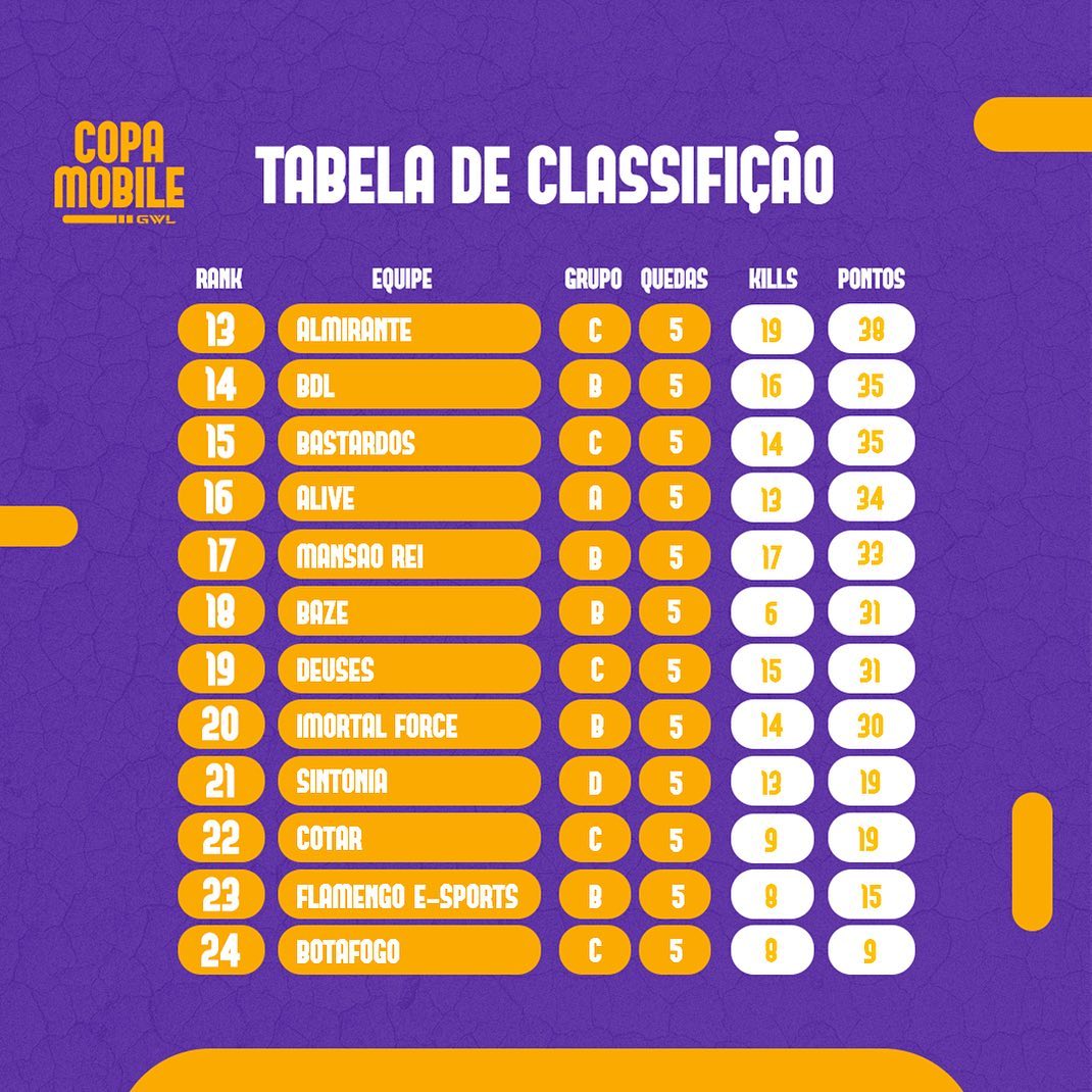 Todos os grupos já jogaram agora olhem como ficou nossa tabela geral pessoal, @suicidesquadofc_ fez um ótimo dia e disparou na liderança com 80 pontos, em segundo lugar com 72 pontos temos a @xisde.gg que fez uma ótima estreia no dia de ontem e em terceiro lugar também com 72 pontos temos a @tropadobruxogg_ , no MVP temos o @ffangelo7 com 12 abates. Segunda-feira a partir dás 15:00H irão se enfrentar os grupos A x C, temos encontro marcado com vocês em! 💥