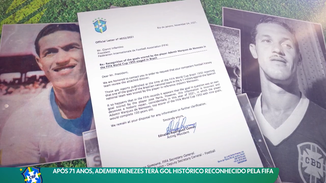 A Fifa sinalizou positivamente para a CBF e aguarda questões burocráticas para oficializar Ademir como o autor do gol. Assim, ele, que completaria 100 anos neste ano, terá os nove gols marcados na Copa do 1950 reconhecidos pela Fifa, sendo confirmado como o maior artilheiro do Brasil numa edição de Mundial – Ronaldo fez oito na Copa do Mundo de 2002.