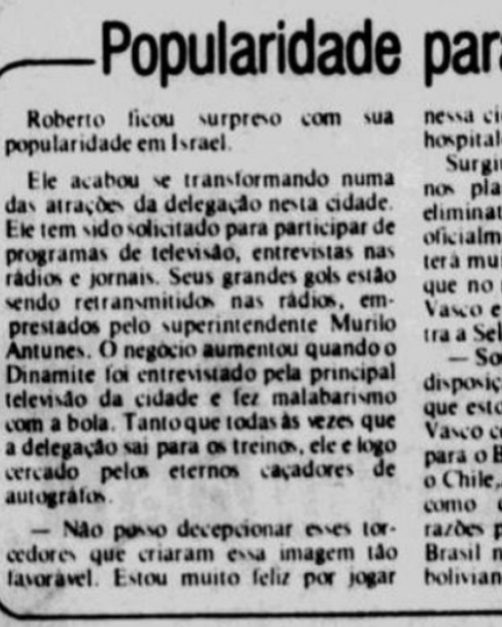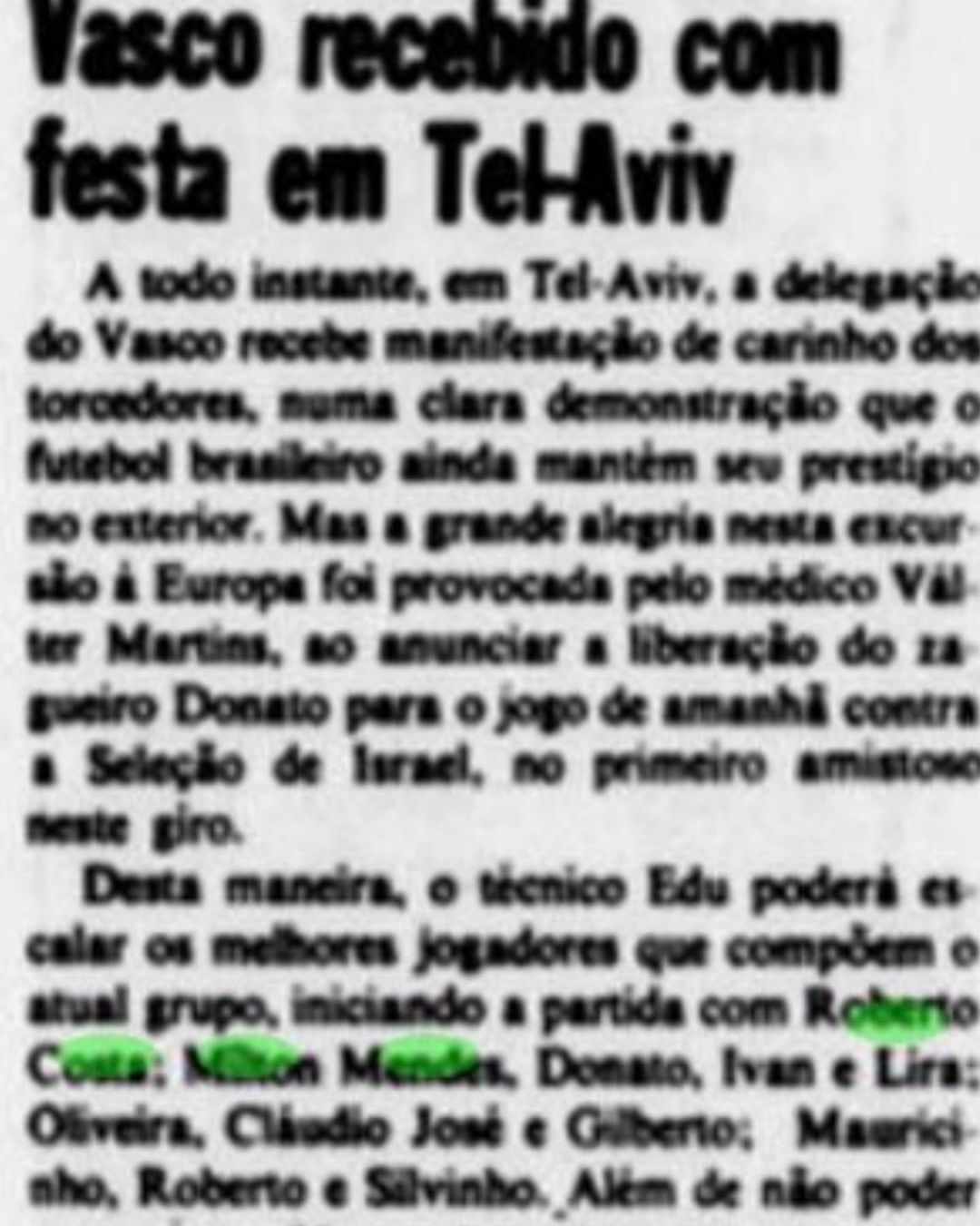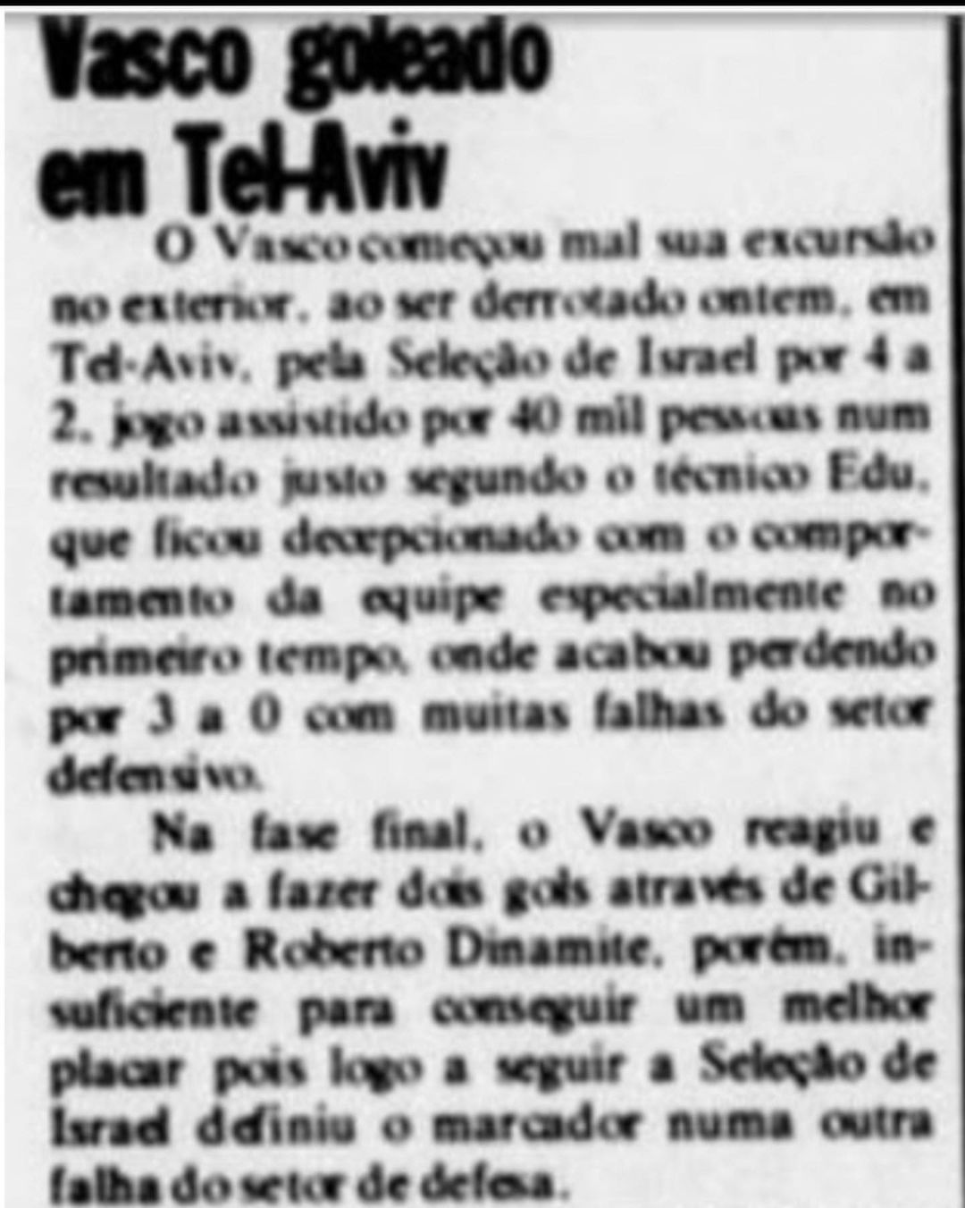 Essa camisa foi usada pelo goleiro Roberto Costa no amistoso que ocorreu com a equipe Vascaína e a seleção de nacional de Israel no dia 22 de Maio de 1985 na cidade Tel Aviv. O placar não foi favorável, mas este é apenas um detalhe.