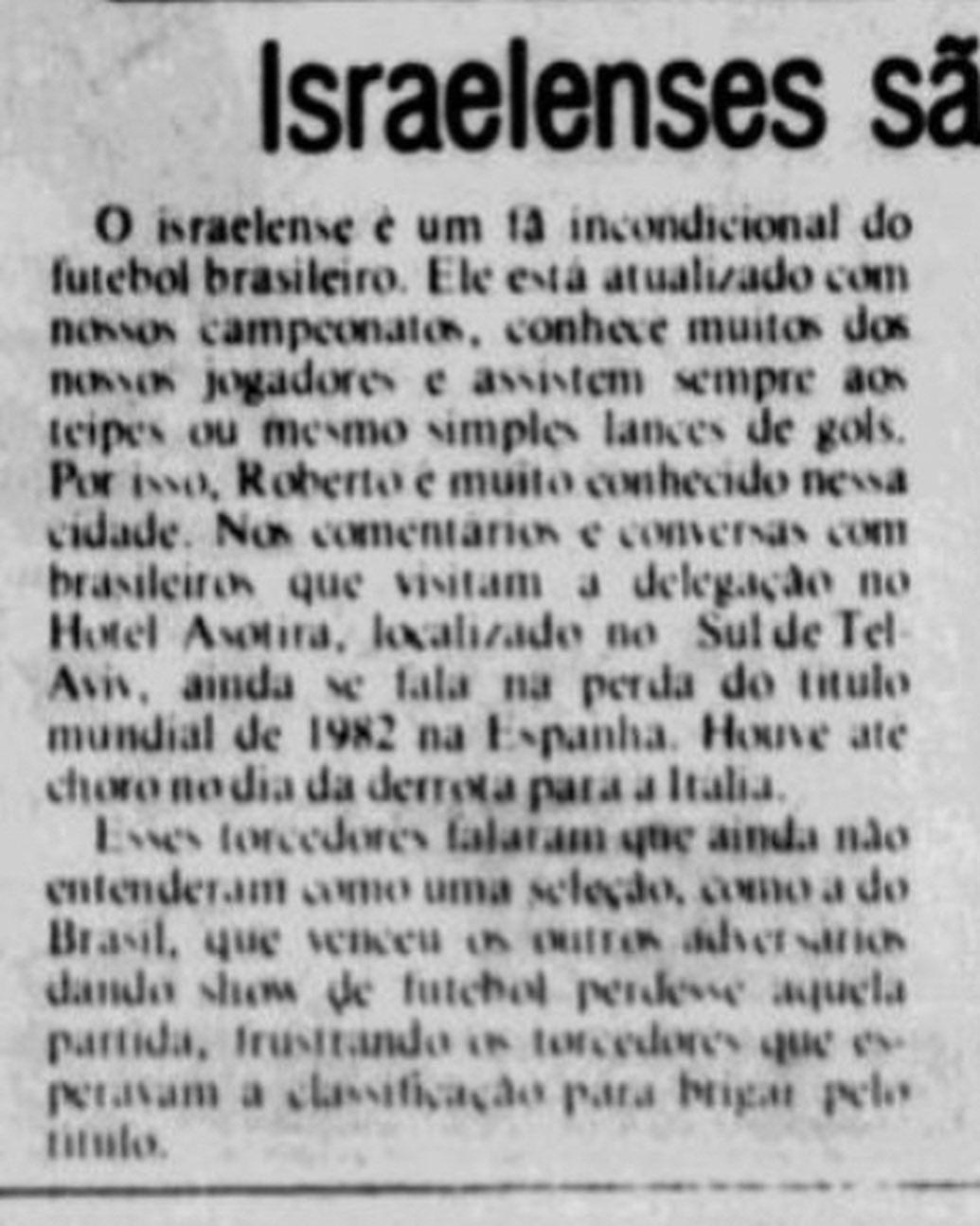 Esta camisa foi trocada com Goleiro Israelense Ariye Haviv, que guardou a camisa até pouco tempo.