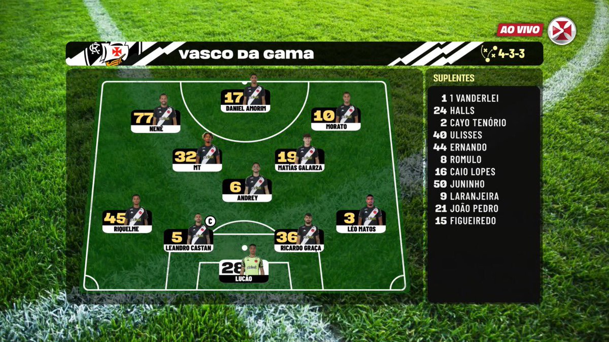 VascoTV apresenta disposição tática do time titular desta 2ª-feira; confira