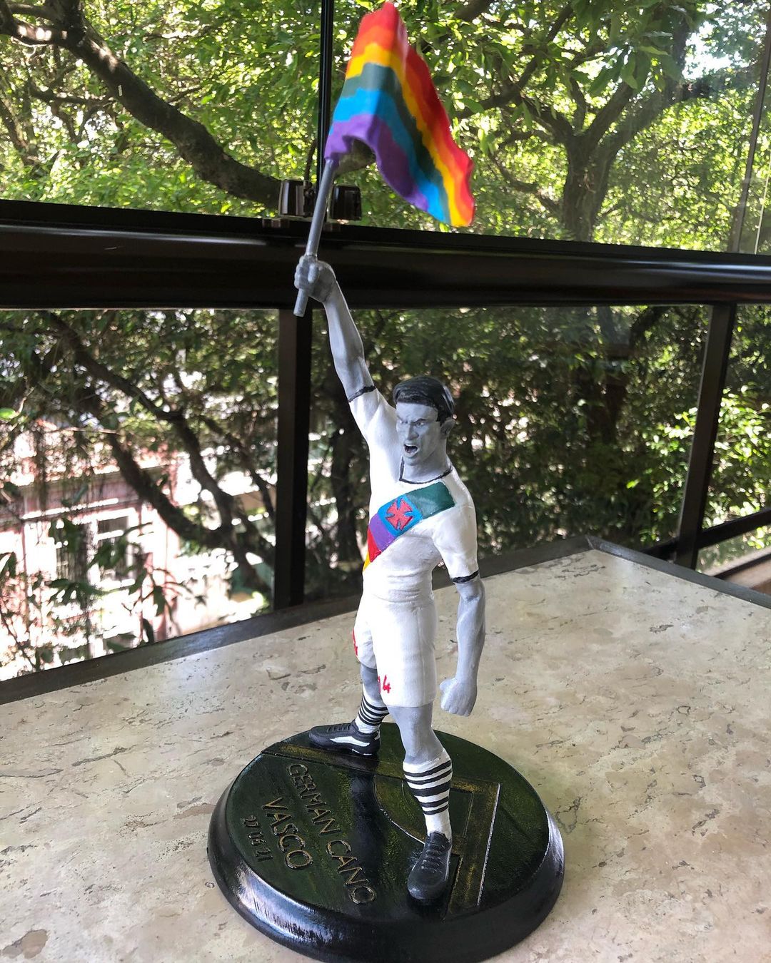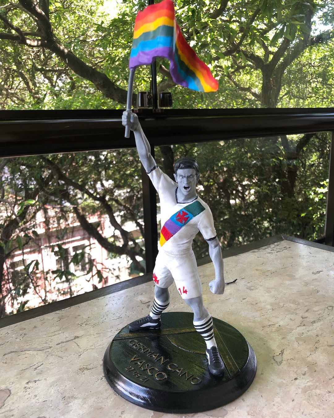 Artista produz miniatura inspirada em Germán Cano com a bandeirinha LGBTQIA+; veja
