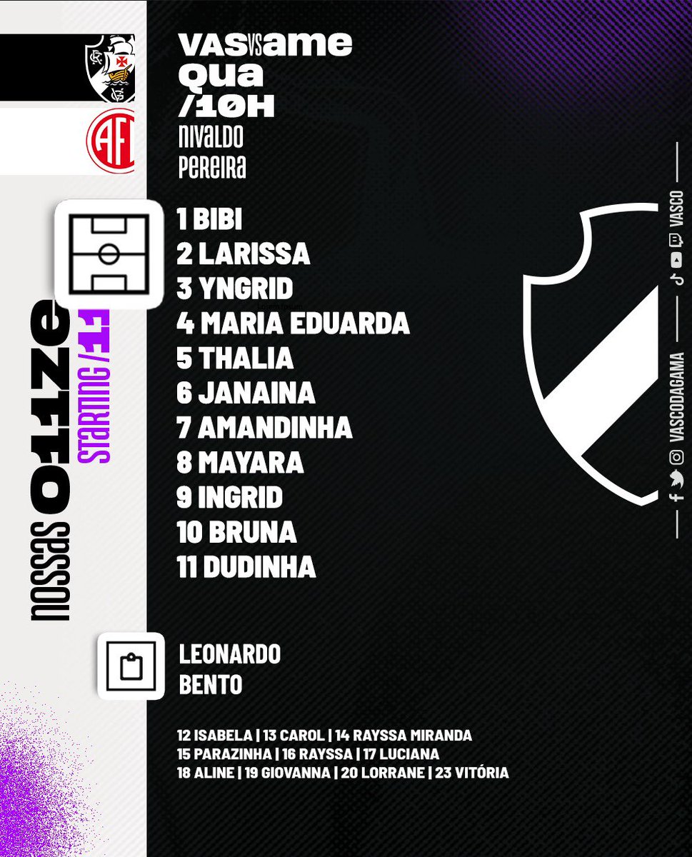 Feminino Base: Veja a escalação do Vasco para a estreia no Estadual Sub-18 contra o America