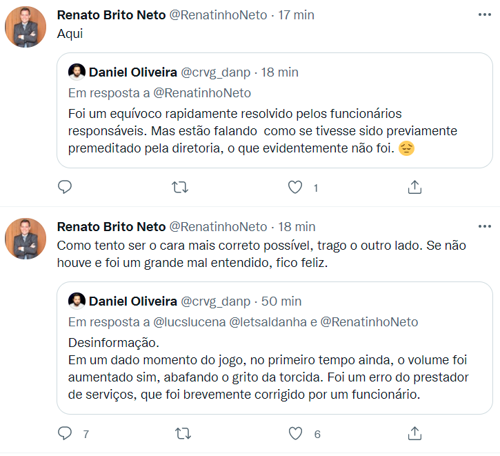 Fonte: Twitter do VP do Conselho Deliberativo Renato Brito Neto