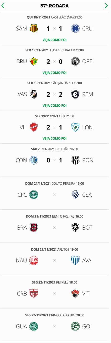 Fonte: NETVASCO (texto), ge (classificação, resultados)