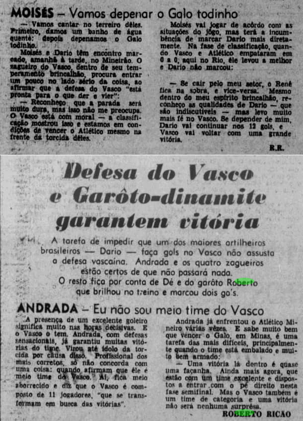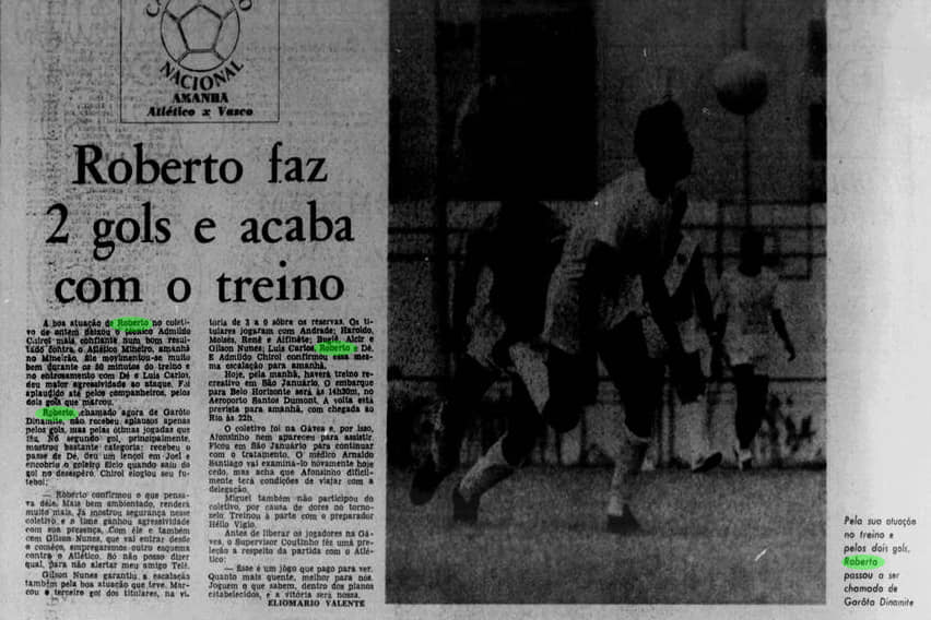 Garoto-Dinamite, quem diria, ganha seu apelido justamente após um treino na Gávea, no apronto para a partida contra o Galo que seria disputada no dia seguinte em BH.