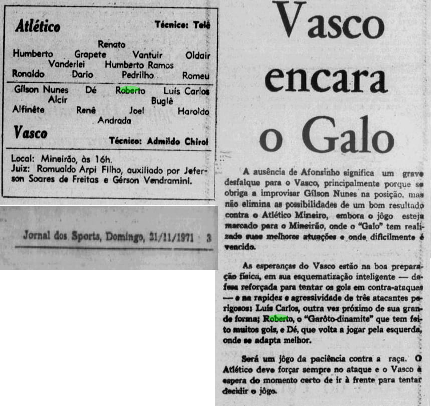 Há 50 anos, Roberto ganhava o apelido de Dinamite e era escalado pela 1ª vez como titular no Vasco