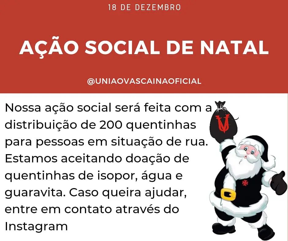 União Vascaína promoverá ação social de Natal; saiba como contribuir