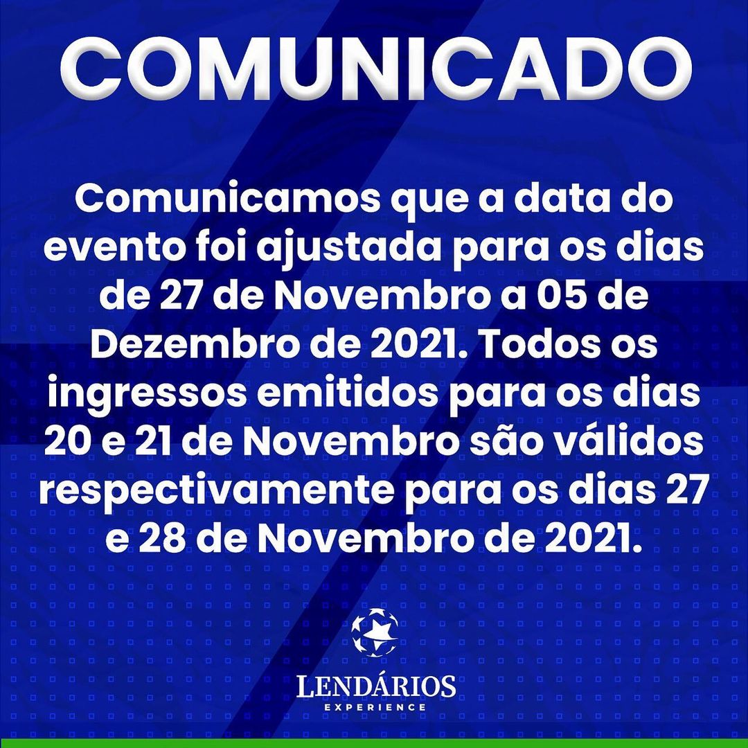 20/11/21 - Masters: Torneio Lendários Experience, que começaria neste sábado, é adiado