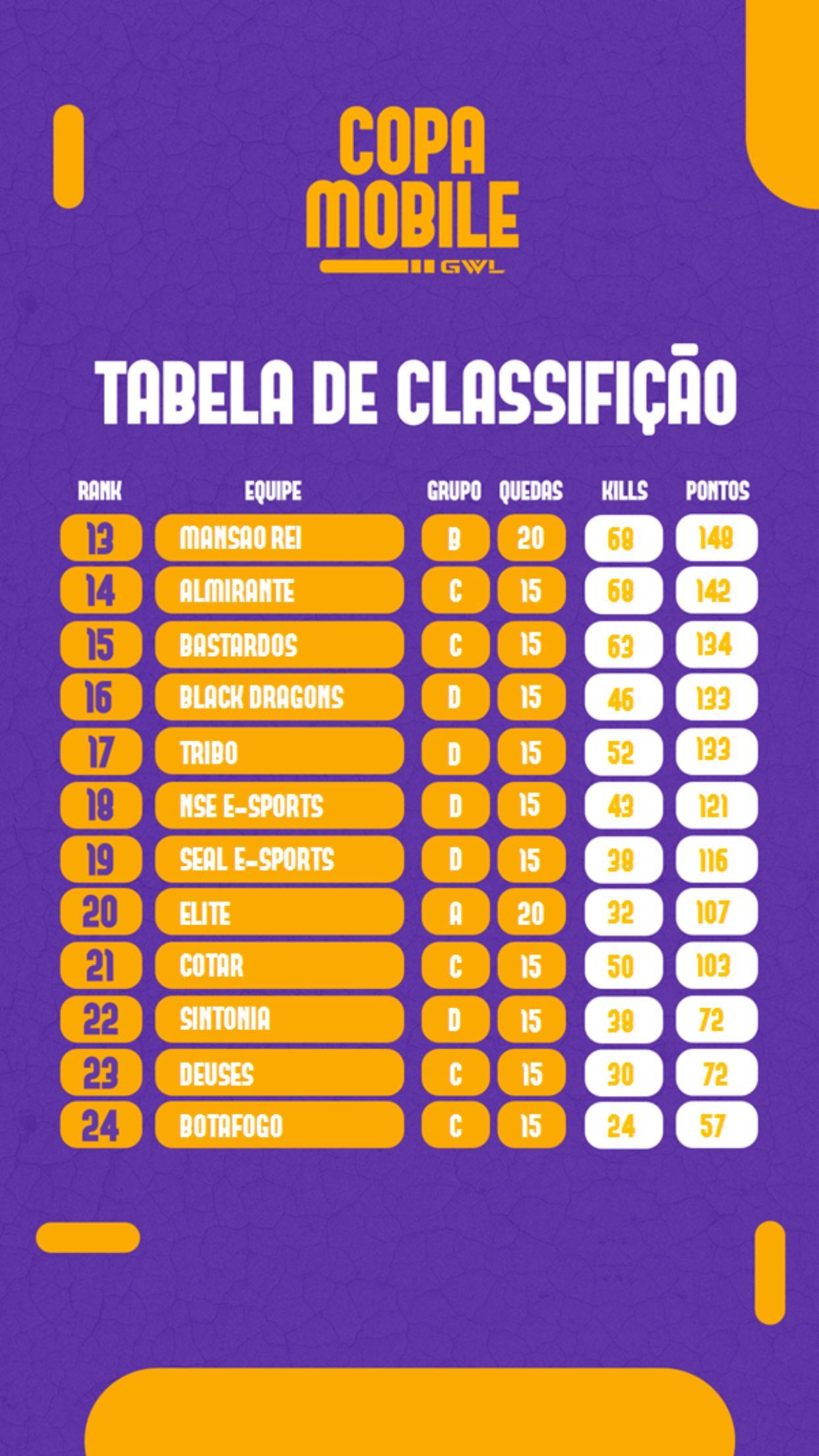 20/11/21 - E-Sports: Vasco está em 16º lugar na Copa Mobile GWL