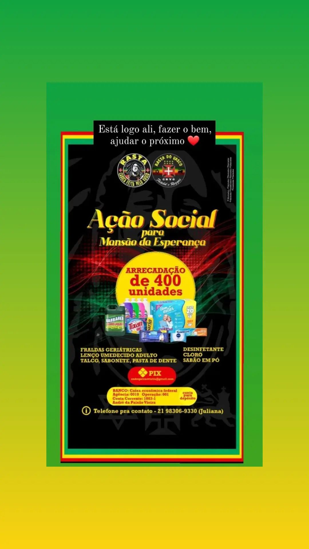 Rasta do Vasco promove arrecadação para casa de repouso; saiba como colaborar