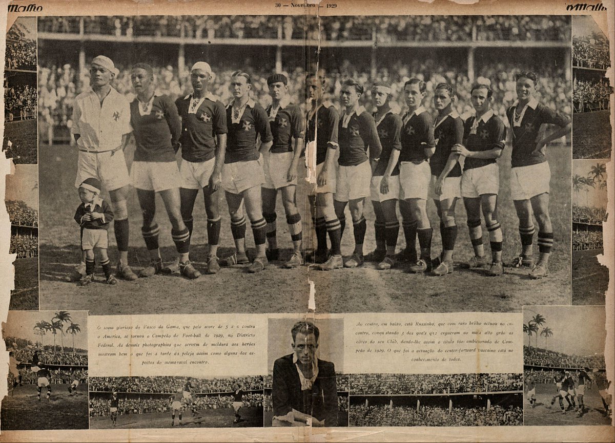 Integravam o elenco vascaíno: o center-half Fausto, o Maravilha Negra; os zagueiros Itália e Brilhante; e o atacante Russinho! Os maiores astros do futebol brasileiro daquele tempo e que seriam convocados para a Copa do Mundo de 1930!