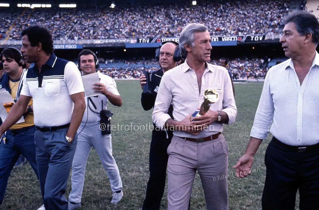 The 3 World Cup winning captains, Carlos Alberto Torres, Bellini and Mauro at the presentation of the new Jules Rimet Trophy, 10 June 1984 at Maracanã. The original trophy had been stolen and the thieves were stupid enough to melt it... #coupejulesrimet #julesrimettrophy #julesrimetcup #julesrimet #carlosalbertotorres #bellini #mauro #tri #seleçãobrasileira #seleção