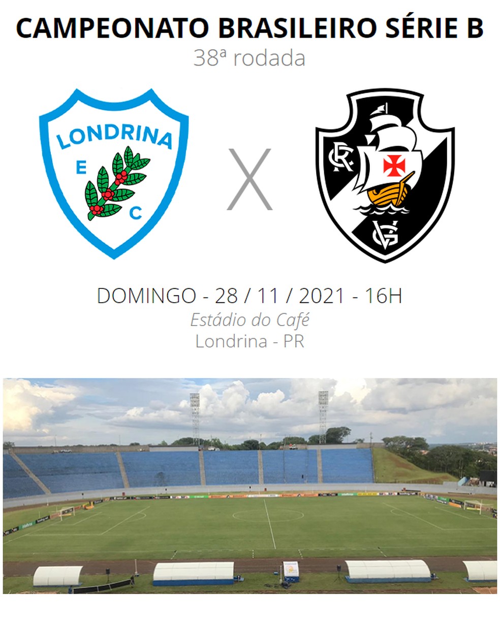 Londrina e Vasco da Gama se enfrentam neste domingo, às 16h (de Brasília), no Estádio do Café, pela última rodada da Série B do Brasileiro. Enquanto o time carioca só cumpre tabela, o Tubarão decide a permanência ou não da Série B. O ge acompanha o jogo em Tempo Real.