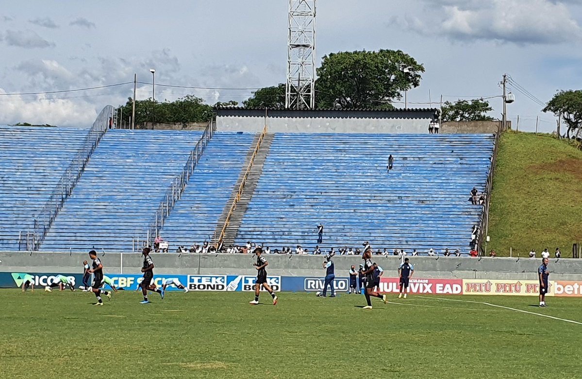 Jogadores do Vasco se aquecem no gramado do Estádio do Café; veja foto
